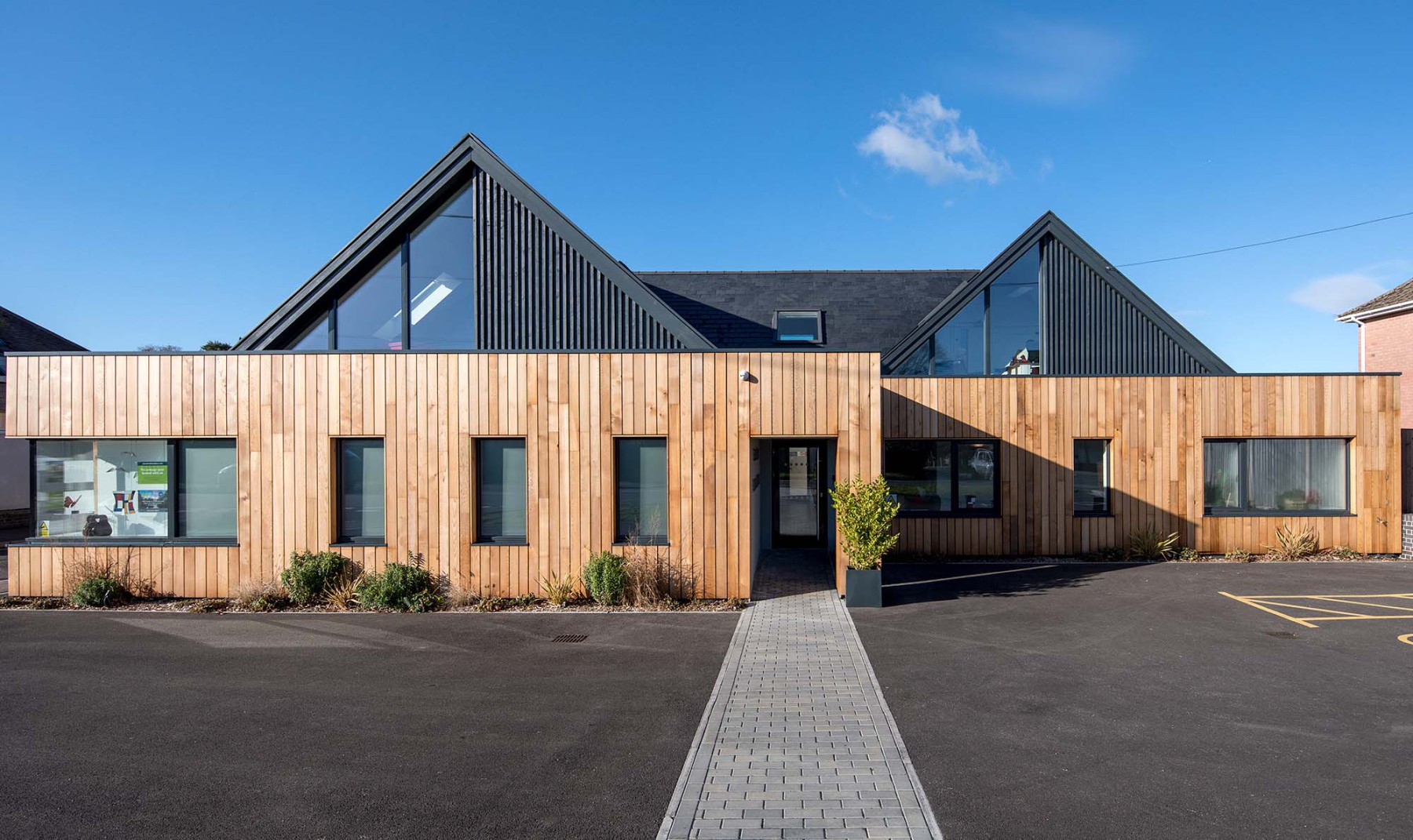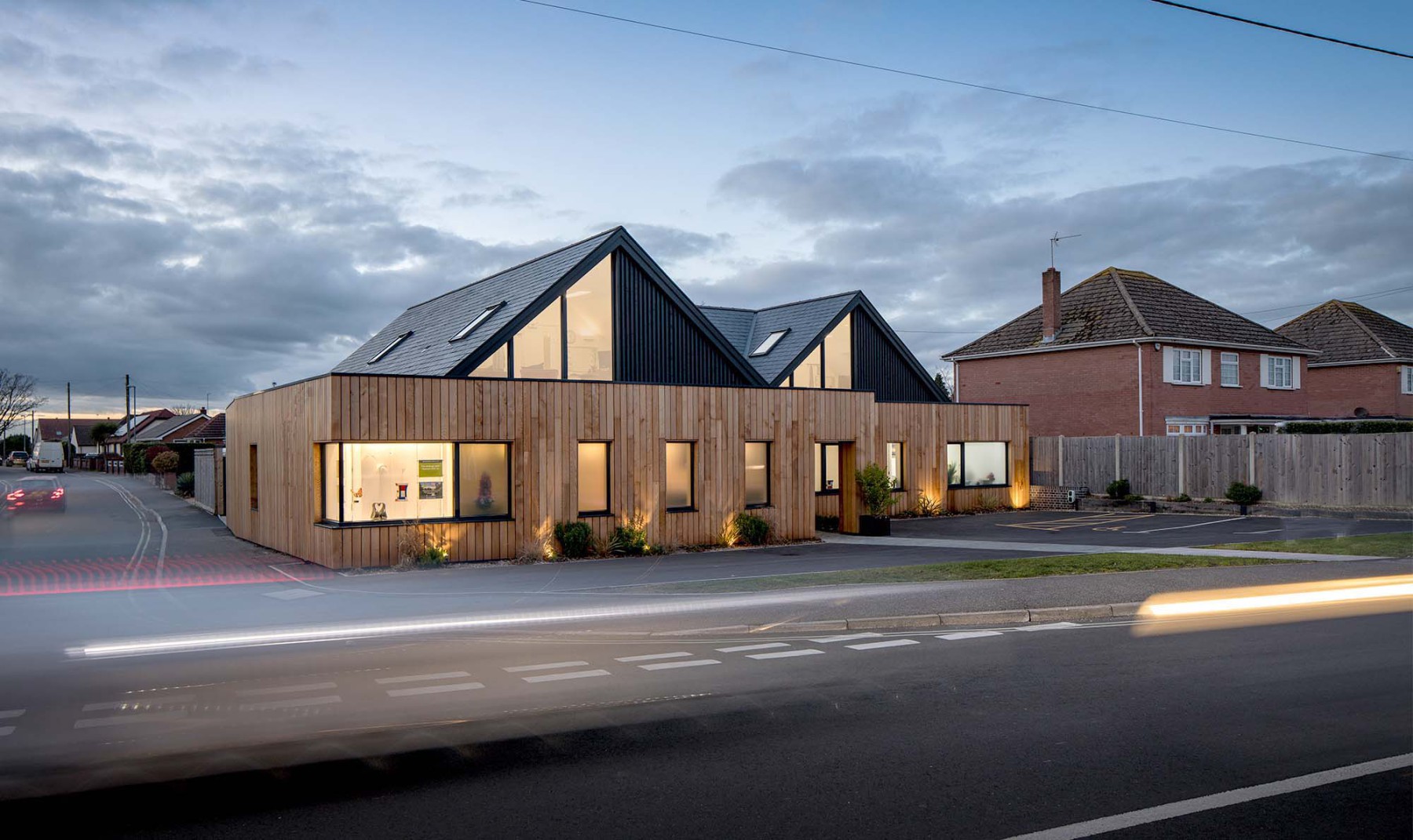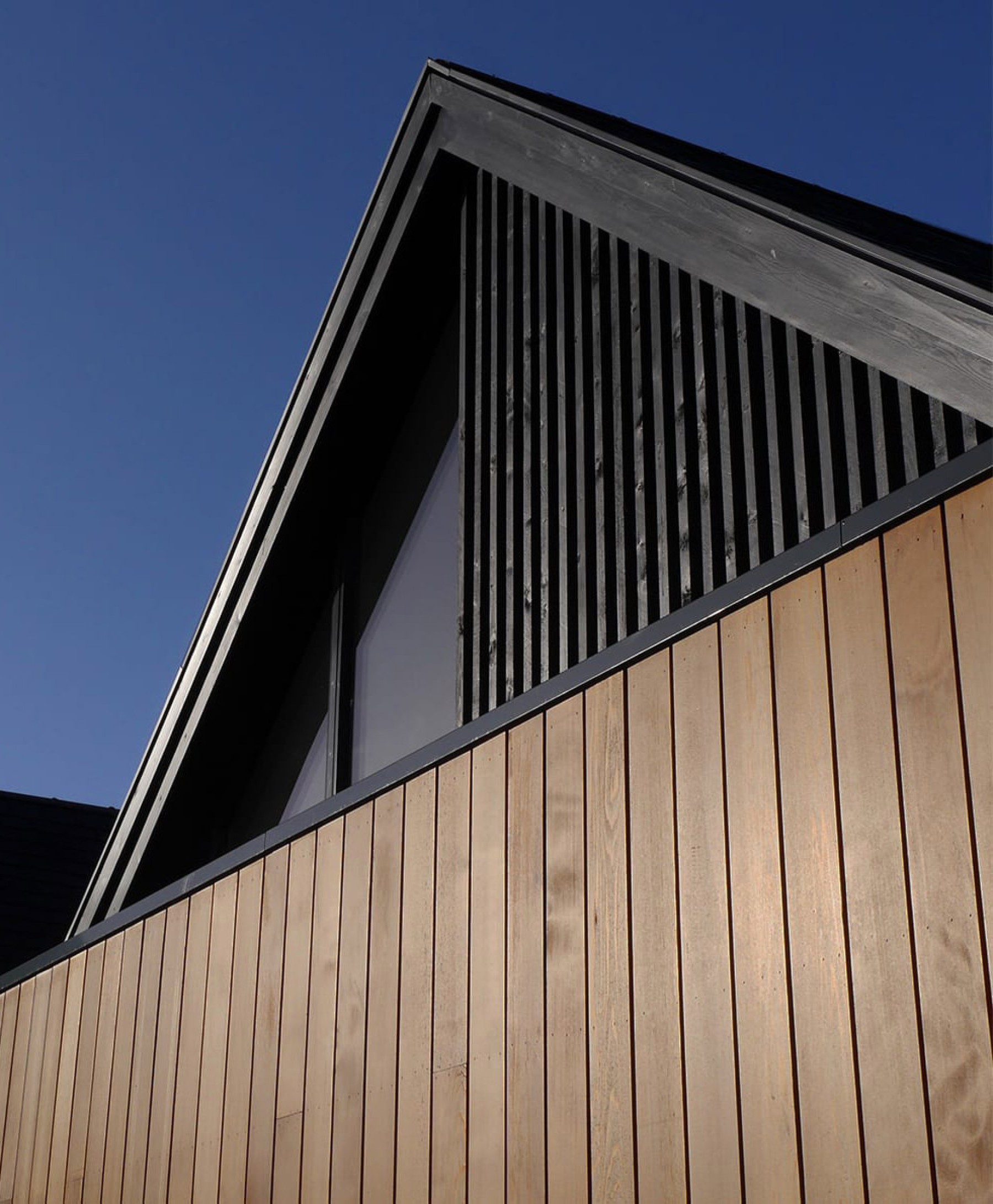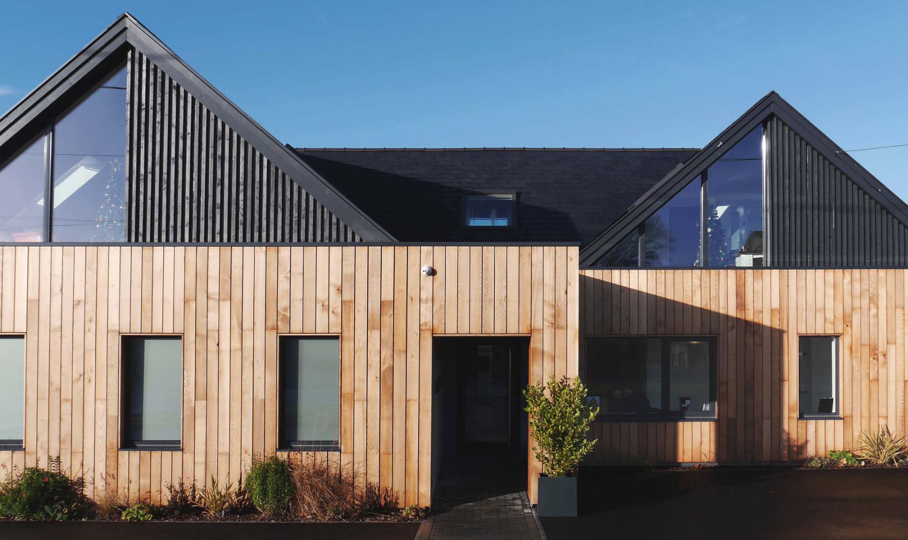 The design uses western red cedar which creates an elegant datum, with feature gables set over to provide interest and contrast to the elevation.