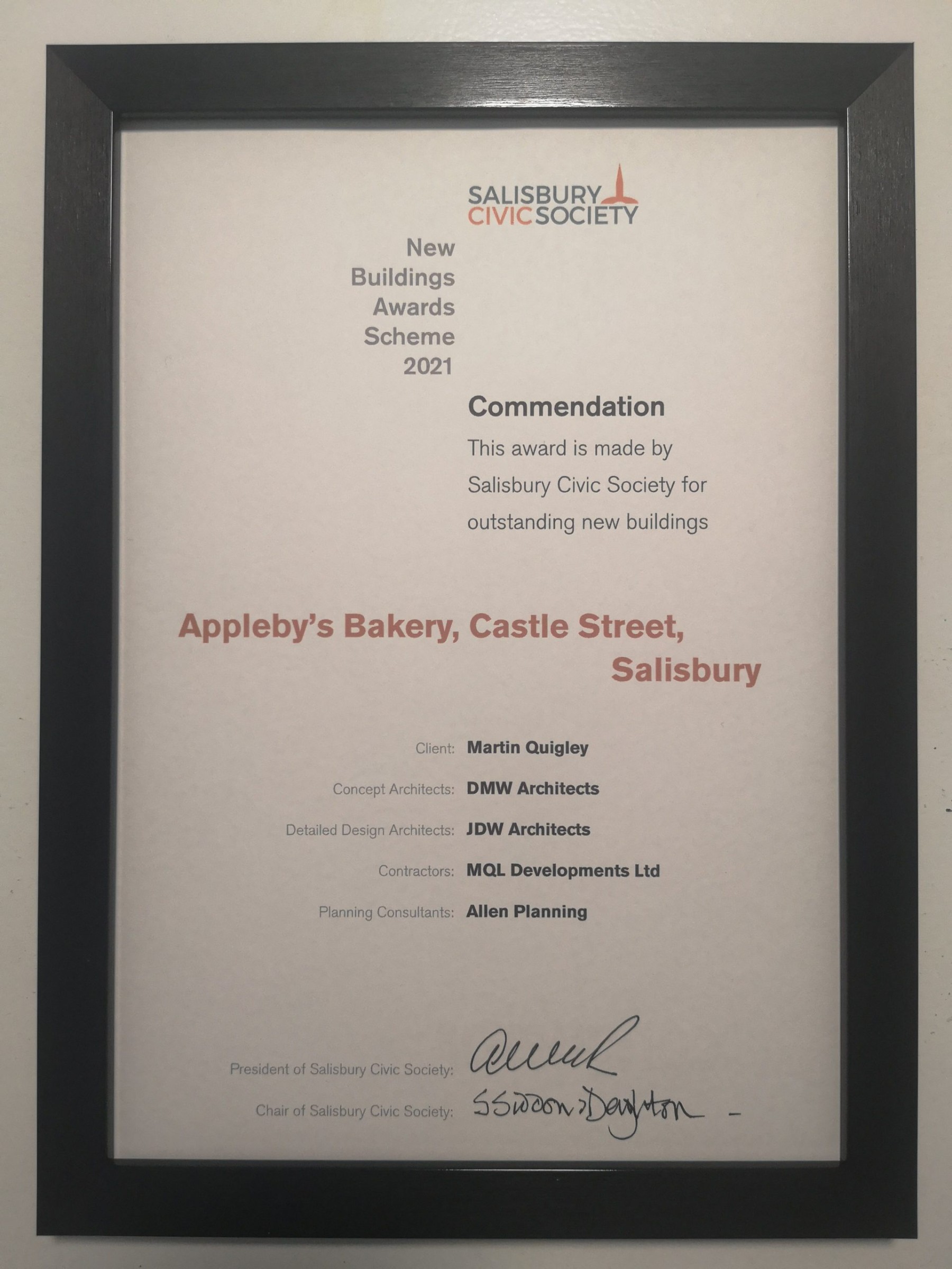 DMW Architects were very pleased to have received an award from the Salisbury Civic Society in recognition of quality design at this year’s 2022 awards event.