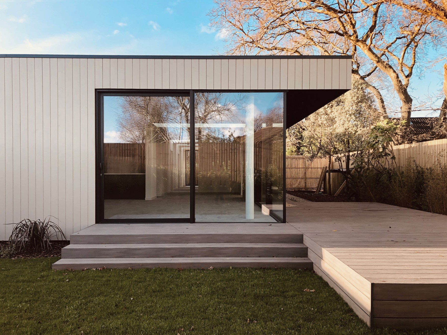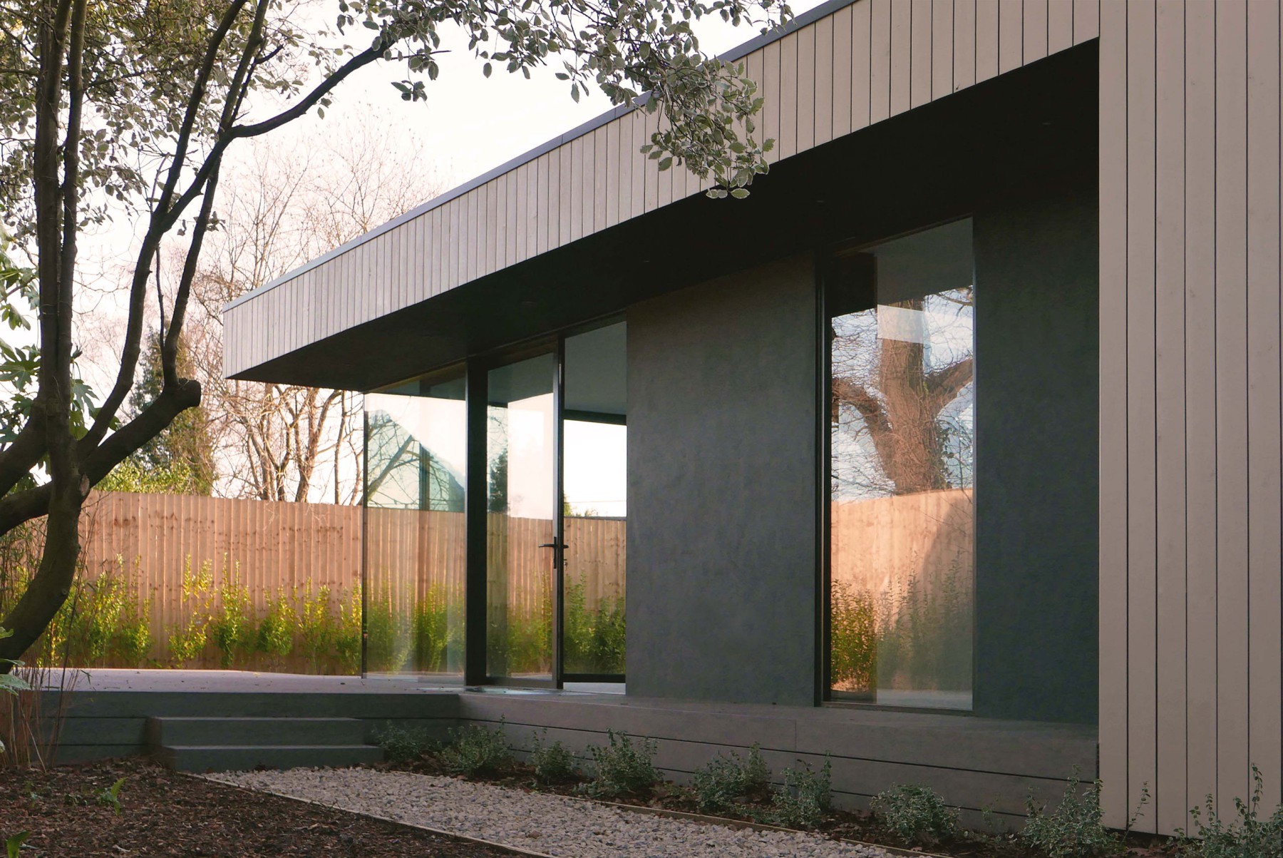 The dwelling was carefully integrated with the environment. It was designed to blend seamlessly with the garden and show respect for the existing tree-line and root protection areas with a lightweight foundation design. Consideration was given to maintaining harmonious relations with neighbouring homes and building lines.