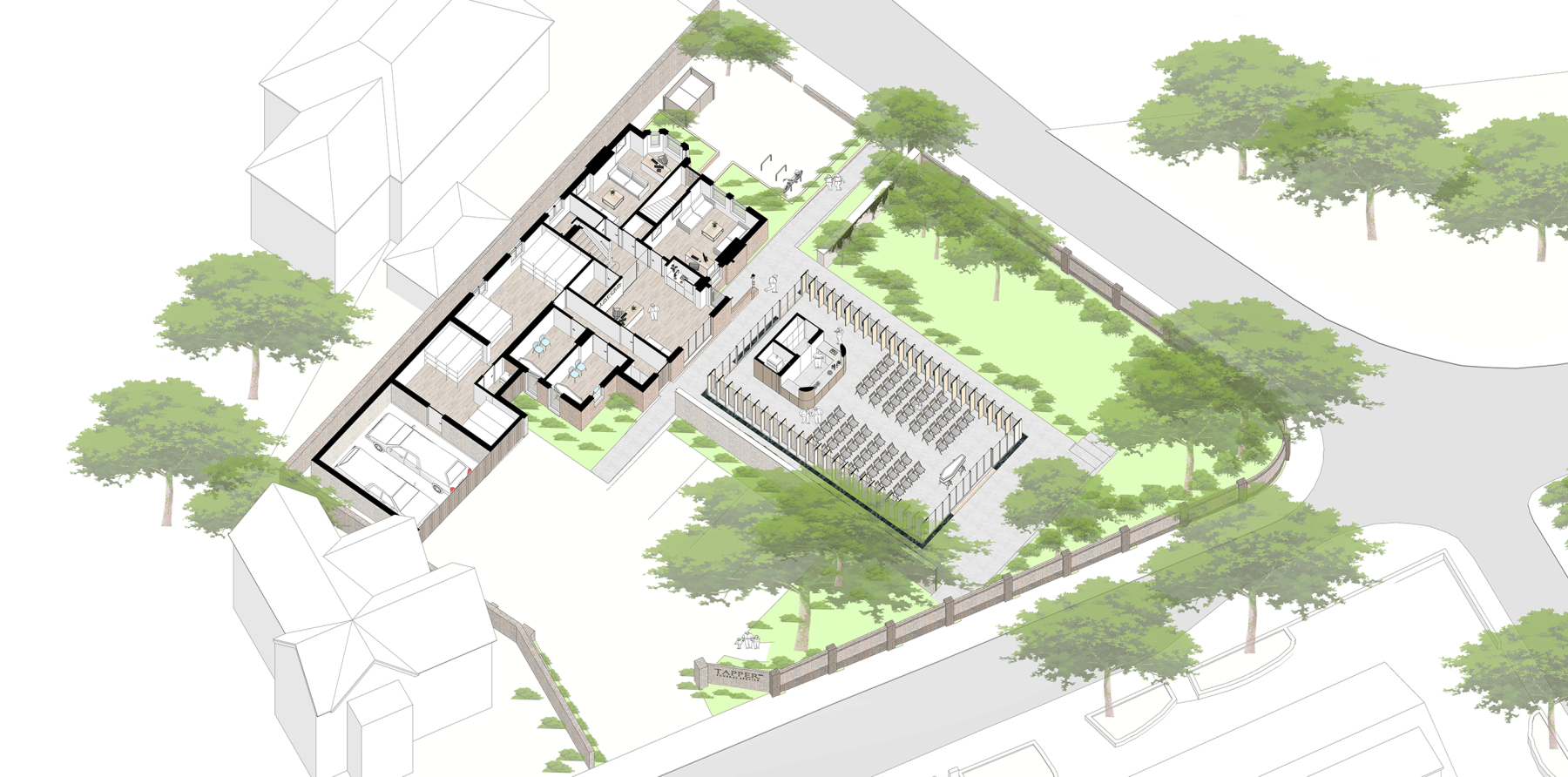 The existing building will be transformed to house a reception area, meeting rooms, together with chapels of rest and other important facilities. Importantly the new structure is set away from the existing building and historic garden walls, creating the effect of a lightweight ‘Jewellery Box’ being gently placed in this landscaped setting.